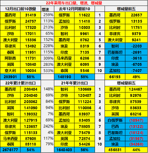 2022年1-12月份增量相对较多的是欧洲和北美、亚洲的市场,墨西哥、比利时、沙特、菲律宾等都很强。