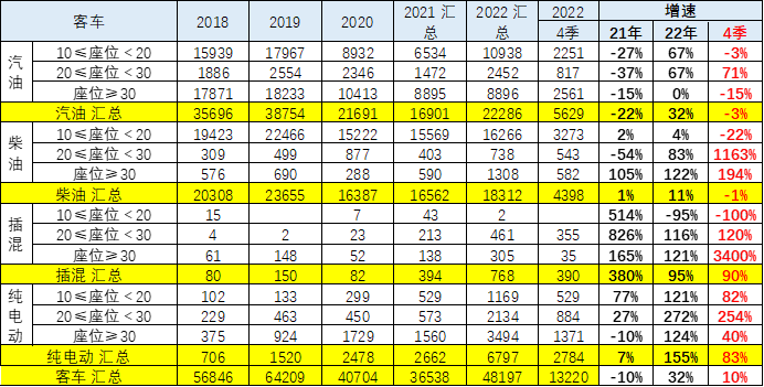 由于疫情的爆发,世界客车需求出现一定下降,导致近两年的中国客车出口持续萎缩,从2019年的6.4万台下降到2021年的3.7万台。今年疫情后的世界需求恢复,中国客车出口恢复增长到4.8万台,4季度增长10%。